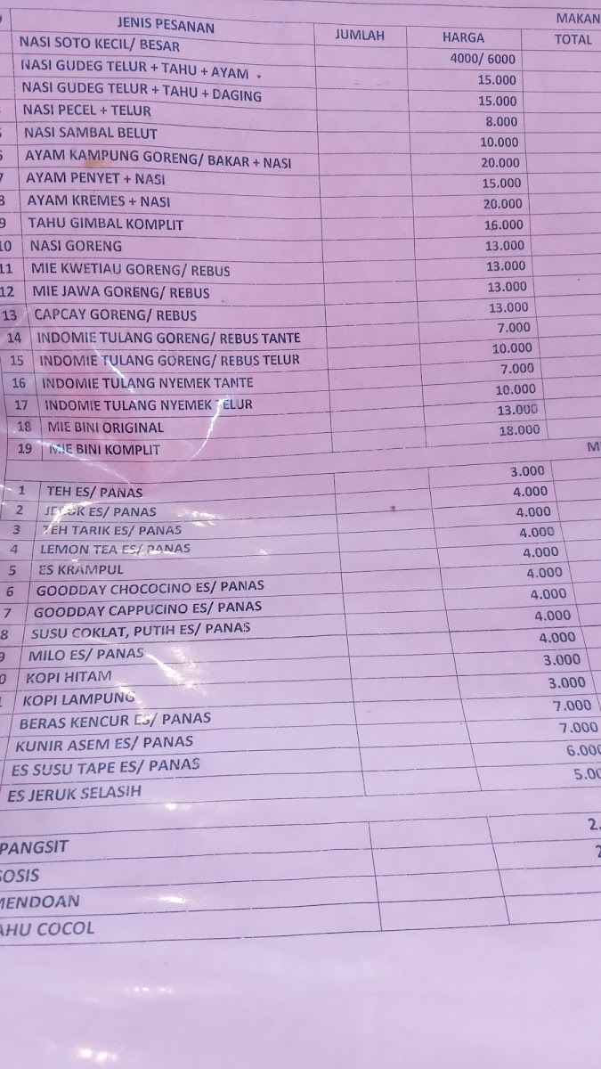 The menu features beloved local dishes such as soto, nasi temlo, savory gorengan sosis, delicate kue sus, and flavorful sate telur puyuh. Each dish is served with care, embracing simple yet satisfying tastes that complement their affordable prices. Customers appreciate the clean and cool environment, alongside friendly service, making it a perfect spot for breakfast or a casual meal. The place also offers amenities like mushola and clean restrooms, ensuring comfort for all visitors, including families with children.